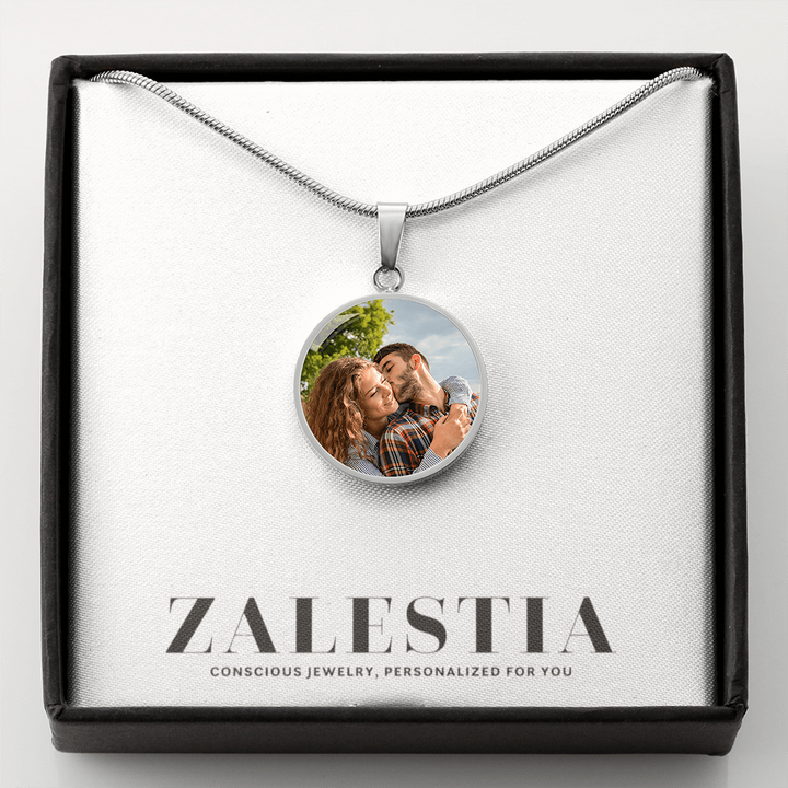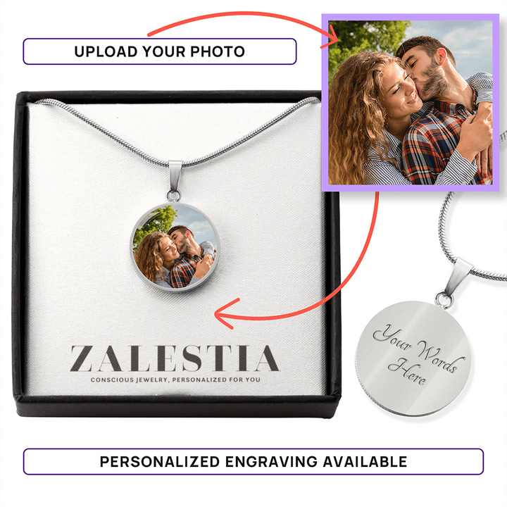 Turn cherished memories into a stunning keepsake with our Custom Photo Circle Necklace. This elegant and meaningful piece allows you to upload a special photo, making it the perfect gift to celebrate love, family, and unforgettable moments.