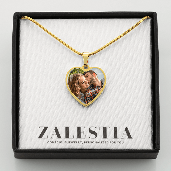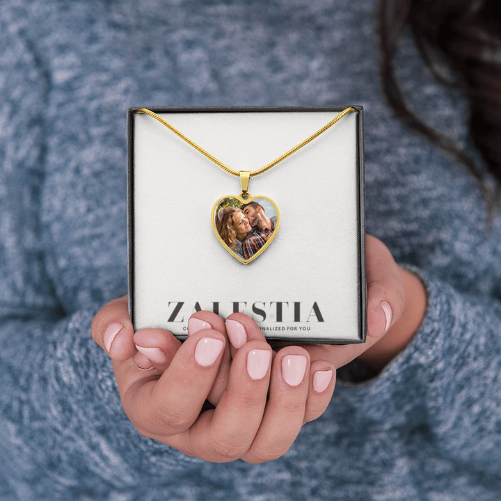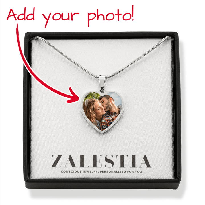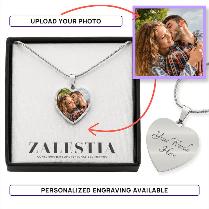 ✔ Custom Photo Upload – Upload your favorite photo to be elegantly placed inside the stunning heart-shaped pendant.